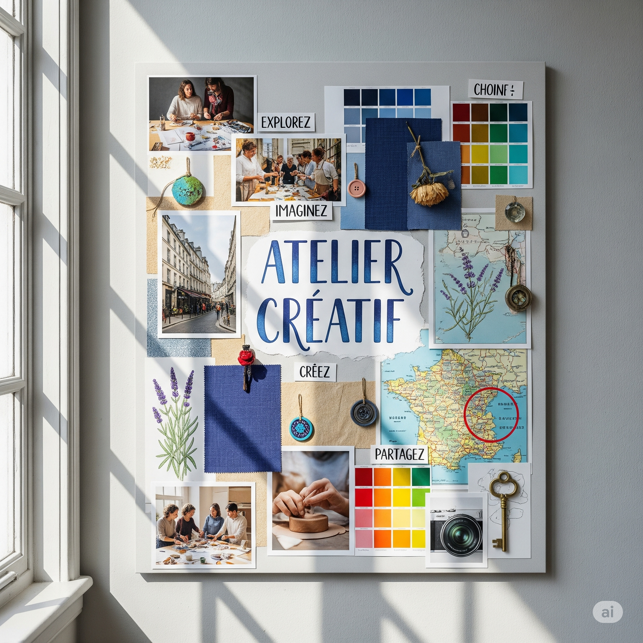 En plus des séances individuelles, je vous propose des ateliers de groupe axés sur le bien-être et la créativité. Que ce soit pour créer un vision board, explorer vos émotions à travers un masque, ou d’autres thèmes passionnants, nous utiliserons ensemble le collage, l’écriture, la peinture, et pourquoi pas des méditations créatives ou des techniques de respiration.